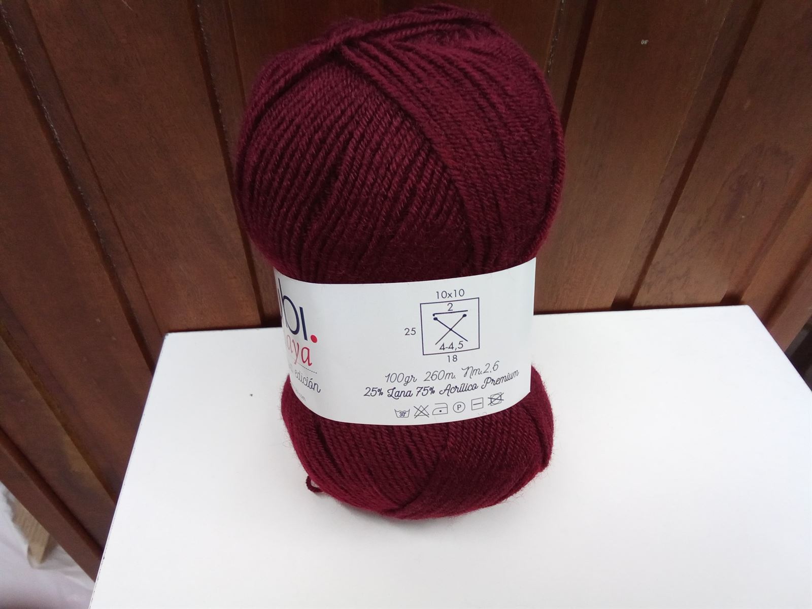 Lana rubí haya color granate, 30% merino y 70% acrílico, ovillo de 100gr y 300m.